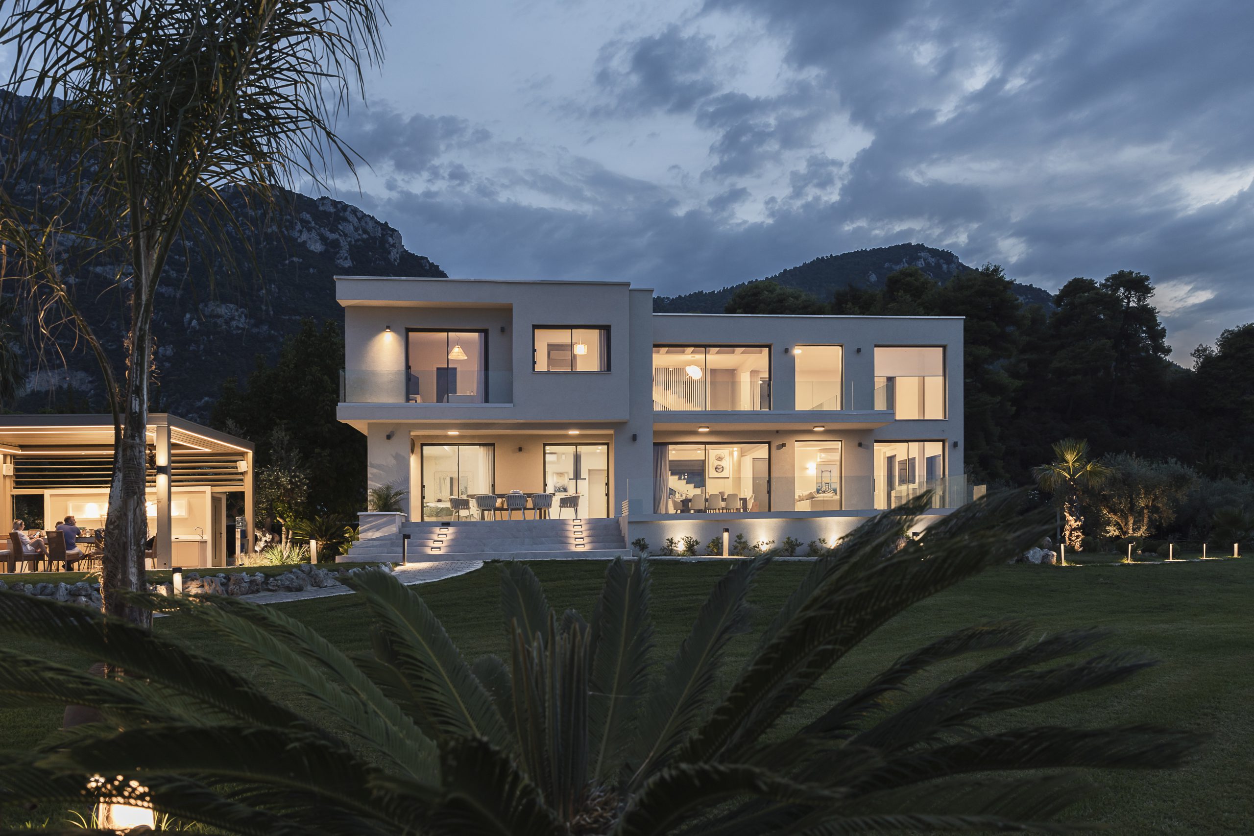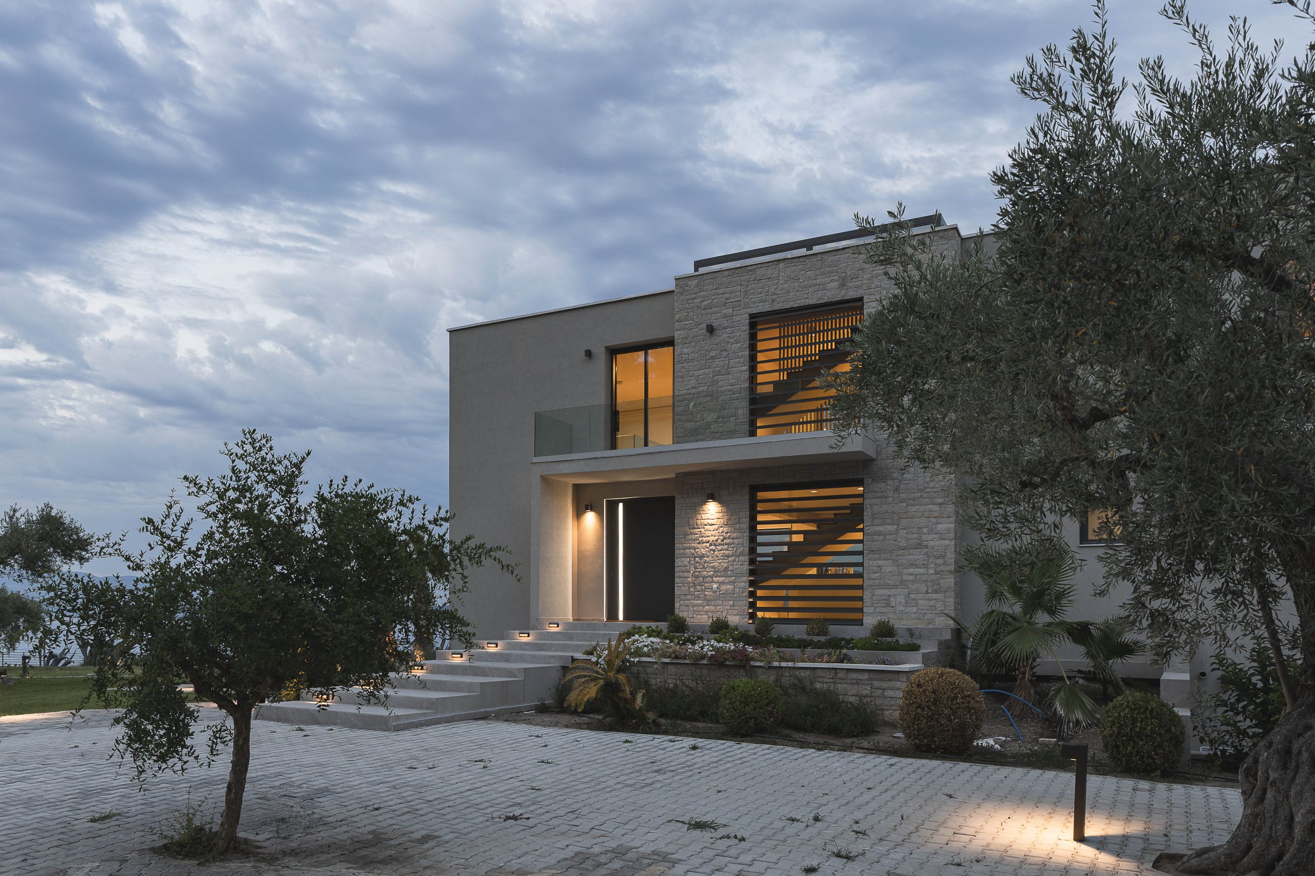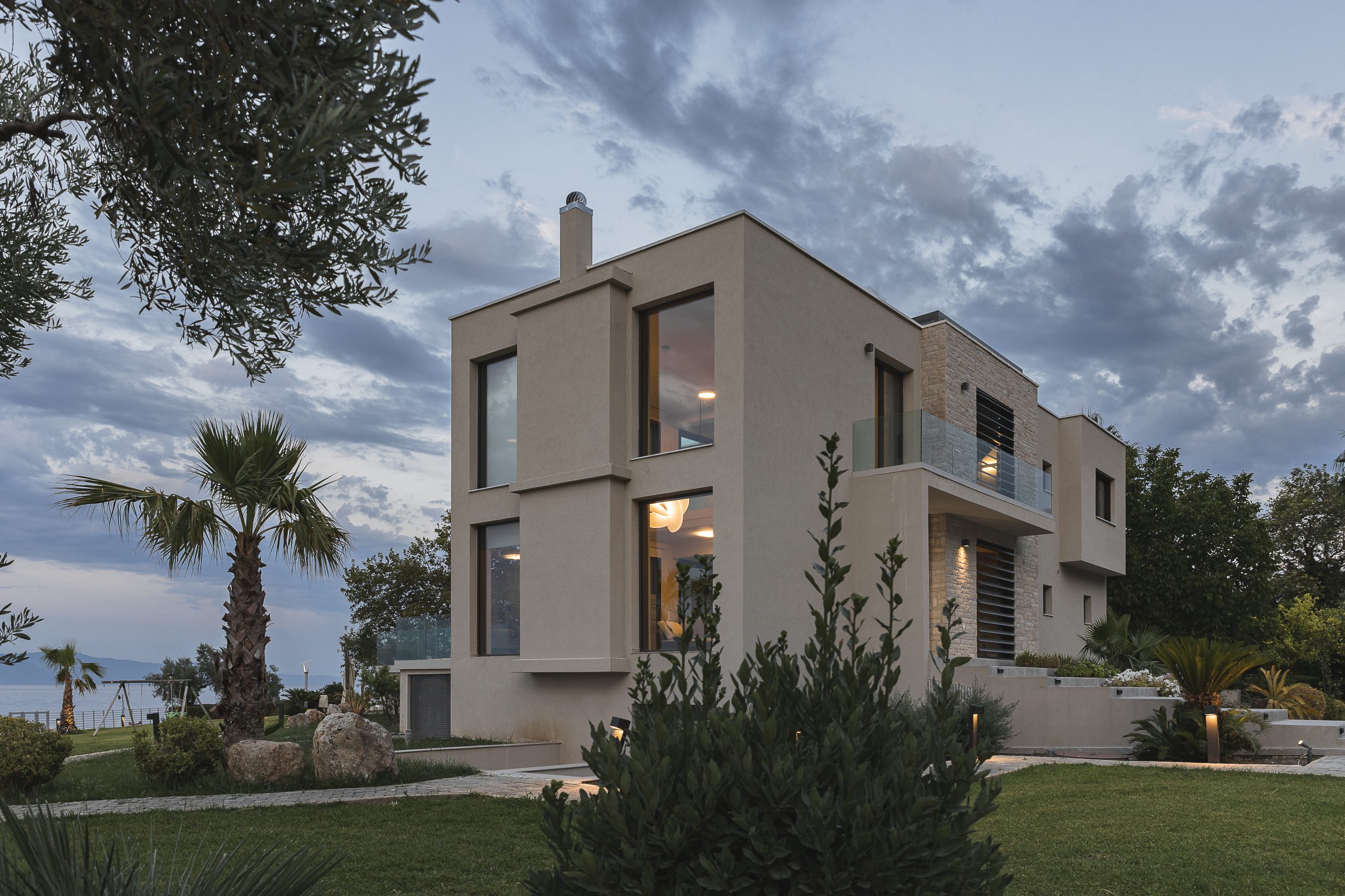 The project is about the design of a two-storey villa with a basement, of 205.00 sq.m. , located in the seaside area close to the town of Agios Konstantinos in Fthiotida. It is designed according to Greek legislation, so as to fulfill the A’ class energy efficiency parameters. The central idea of the architectural composition was, through the transformation of interconnected cubic volumes, to create different qualities of interior and exterior spaces that would highlight the natural landscape. Therefore, each of them will be a unique experience of the abundant natural light and the panoramic views of greenery and sea.