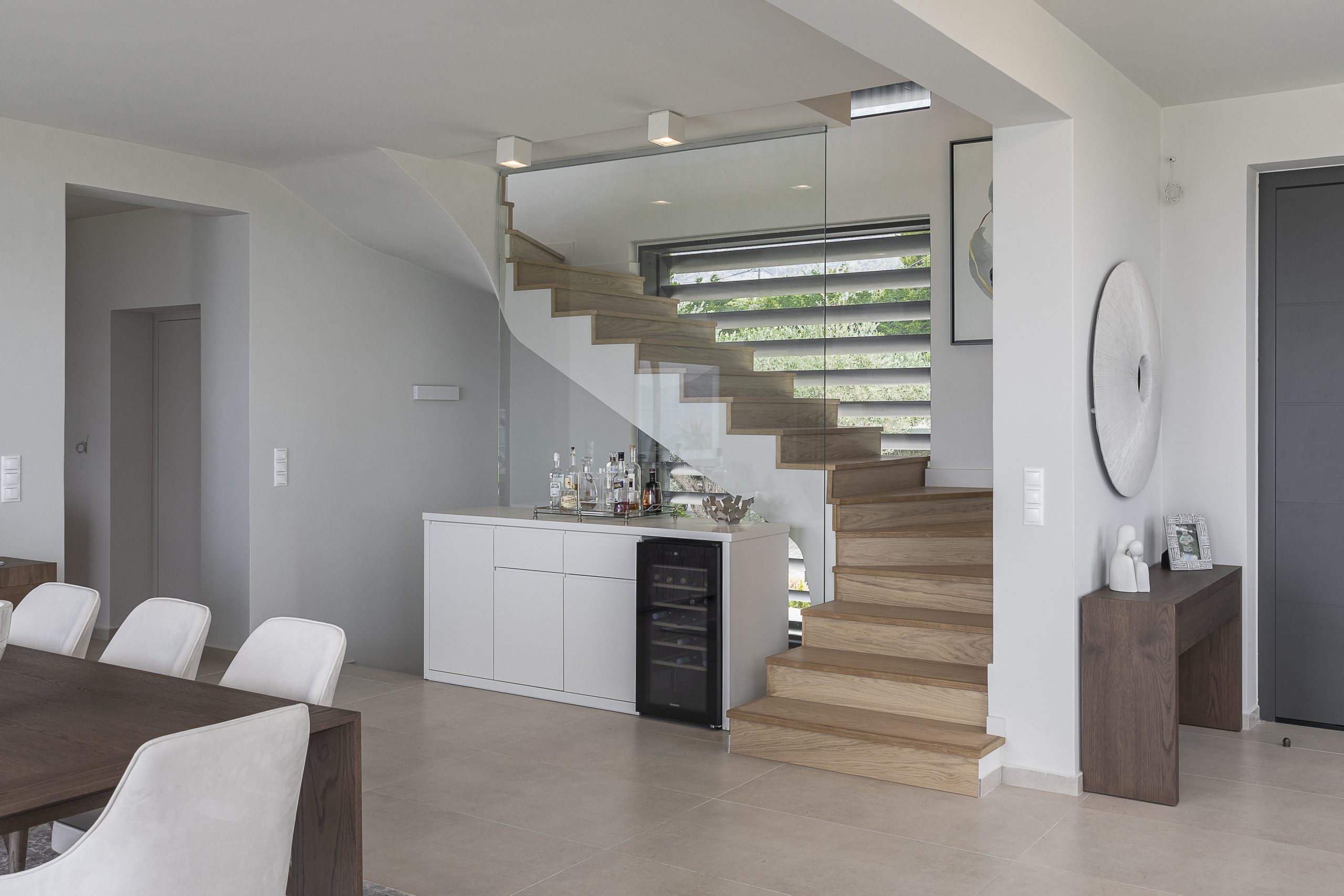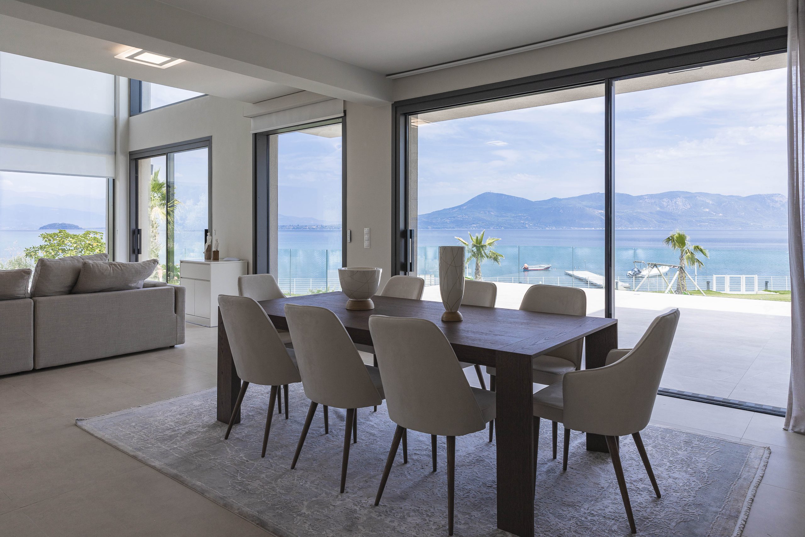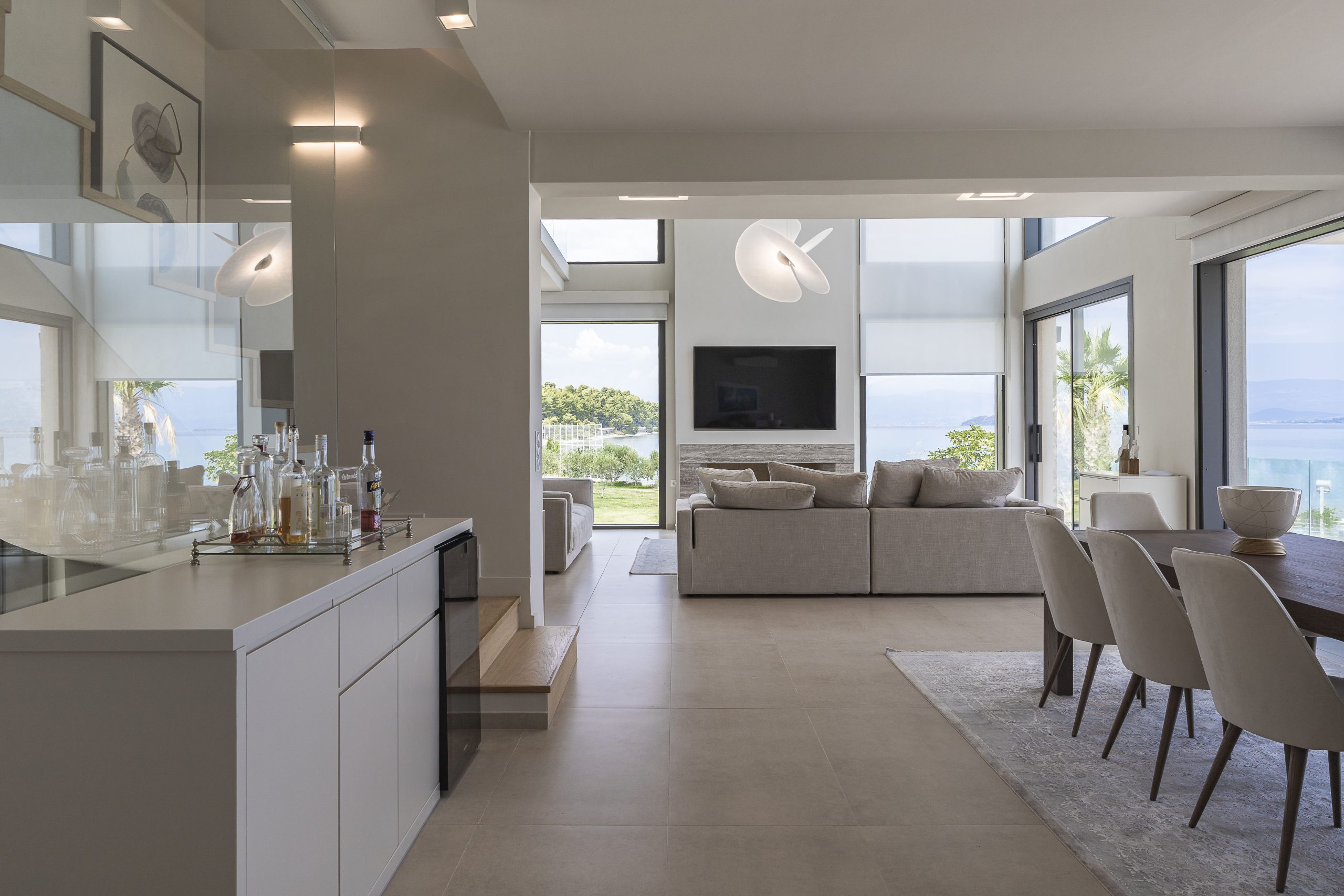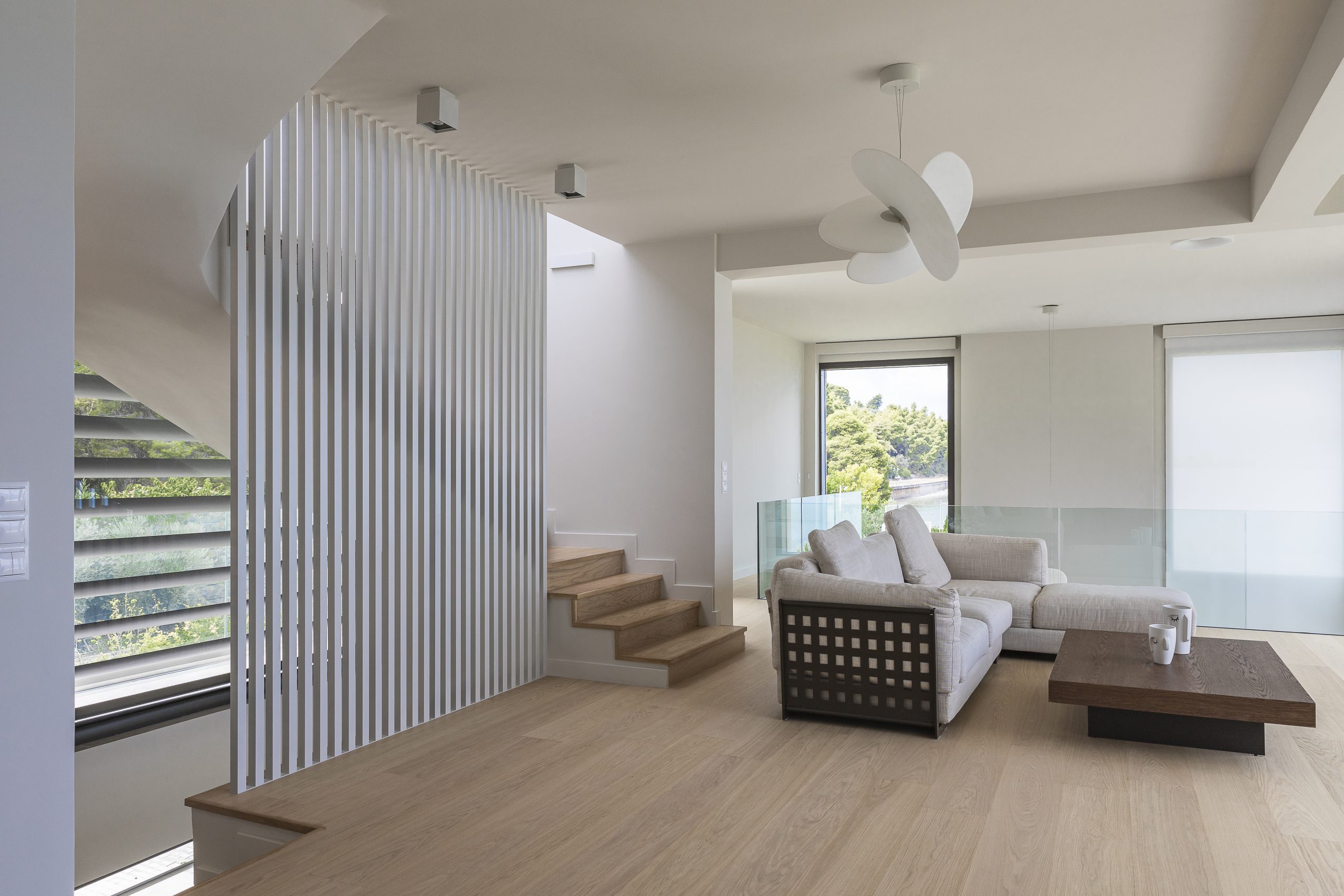 The project is about the design of a two-storey villa with a basement, of 205.00 sq.m. , located in the seaside area close to the town of Agios Konstantinos in Fthiotida. It is designed according to Greek legislation, so as to fulfill the A’ class energy efficiency parameters. The central idea of the architectural composition was, through the transformation of interconnected cubic volumes, to create different qualities of interior and exterior spaces that would highlight the natural landscape. Therefore, each of them will be a unique experience of the abundant natural light and the panoramic views of greenery and sea.